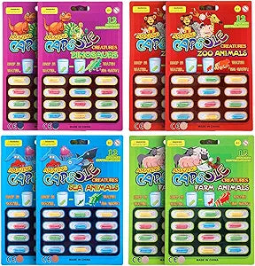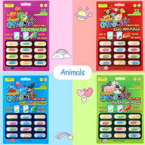 8 Packs of Water Capsules – Includes 8 packs in 4 themes: zoo, farm, sea, and dinosaurs; each pack has 12 capsules.