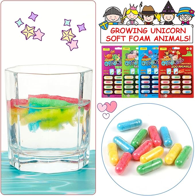 Expanding Foam Animals – Drop capsules in warm water to watch them grow into fun animal shapes.