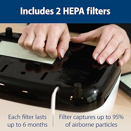 Up to 12 months of filtration: includes 2 HEPA filters (6 months each) capturing up to 95% of airborne particles