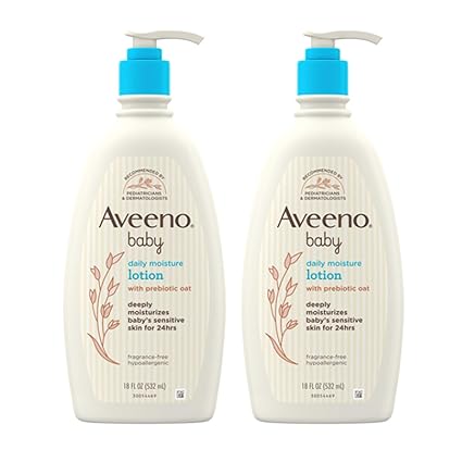 Baby Daily Moisture Body Lotion – Hypoallergenic, Fragrance-Free, Oat-Infused, 18 fl. oz (2 Pack)