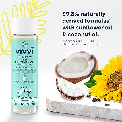 Gentle 2-in-1 Baby Scalp & Body Massage Oil – Fast Absorbing, Hypoallergenic, 4 fl. oz